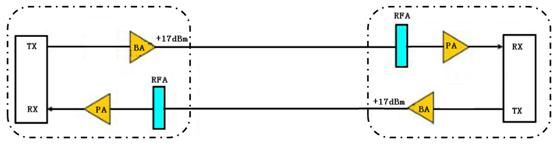 A2GS-M-P17.P12:内置光功率放大器和光前置放大器,光功率放大器最大输出光功率为+17dBm,光前置放大器最大输出光功率为+12dBm