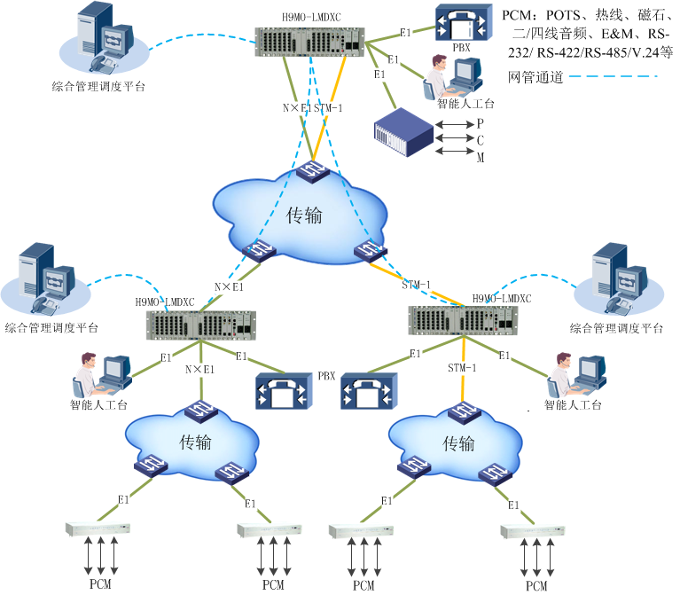 通过多种监控通道,可对我公司的DXC设备及PCM综合接入设备进行统一网管。