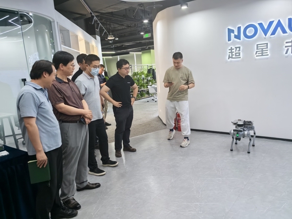 李奎昌一行参观了超星未来自主研发的边端AI芯片“惊蛰R1”及衍生产品线,包括高能效AI模组、智驾域控、电力/煤矿巡检边缘AI产品及解决方案,现场观看了机器狗依托边端AI计算平台和大模型语言交互能力在开放空间自主运动的全过程,详细了解了该公司当前产品应用领域、技术创新、竞争优势等情况。